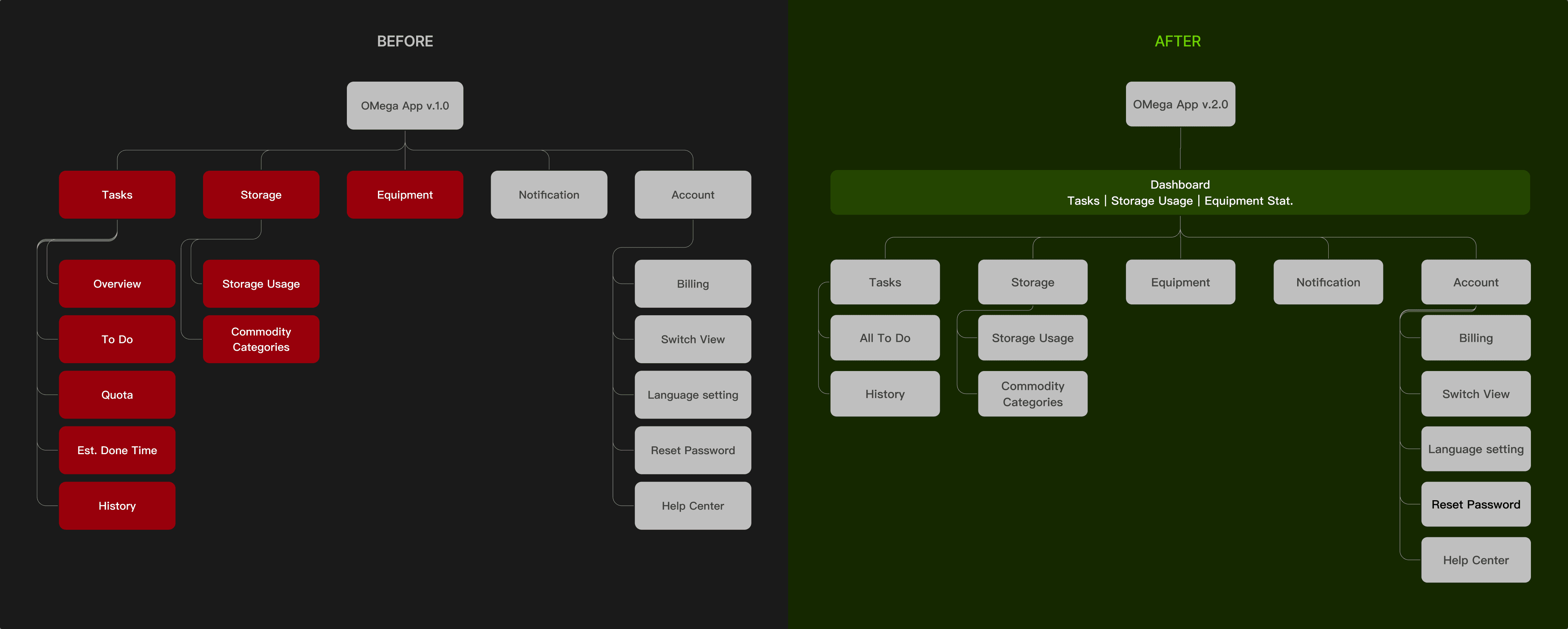 Staff had to navigate through 7 different screens to access essential warehouse information. This fragmented structure forced teams to constantly switch contexts, making it nearly impossible to get a complete operational picture